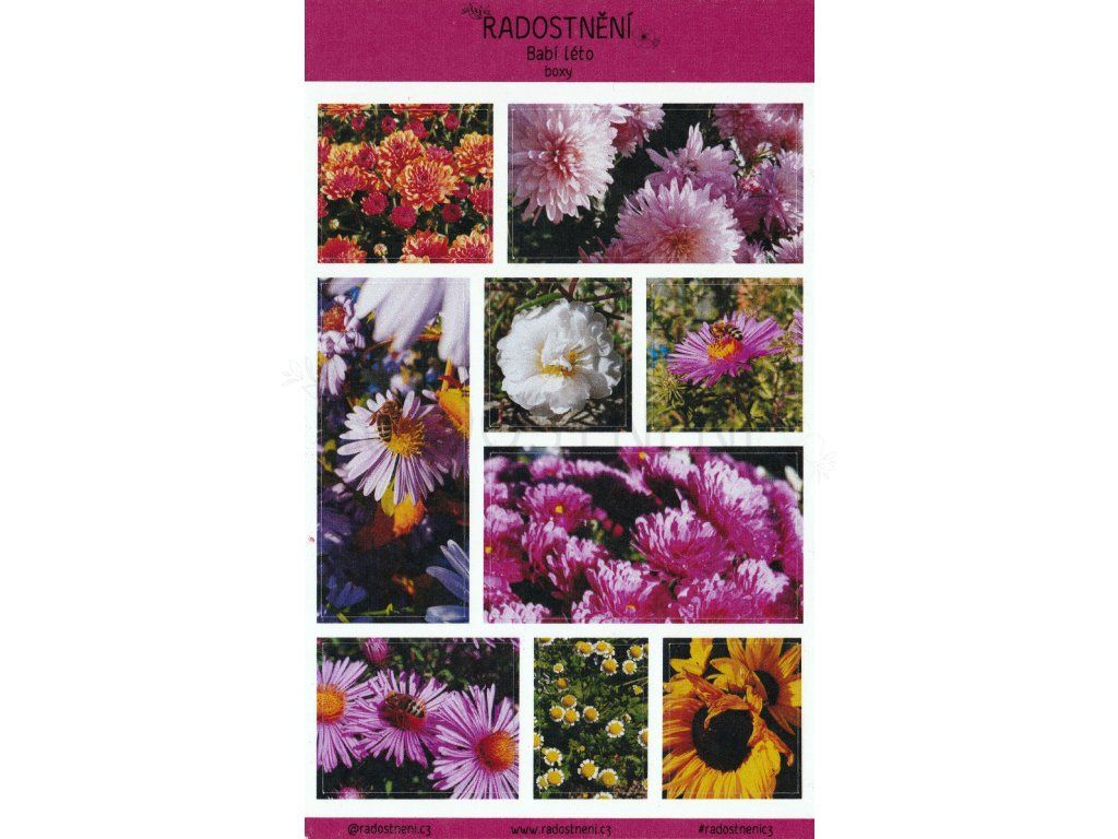 Samolepkový arch s autorskými fotografiemi babího léta.