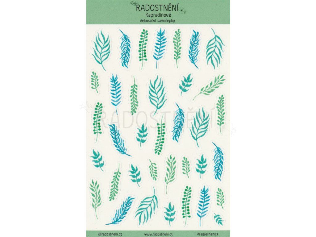 Samolepkový arch s ručně malovanými autorskými motivy kapradin. Dostupné v různých verzích archů.