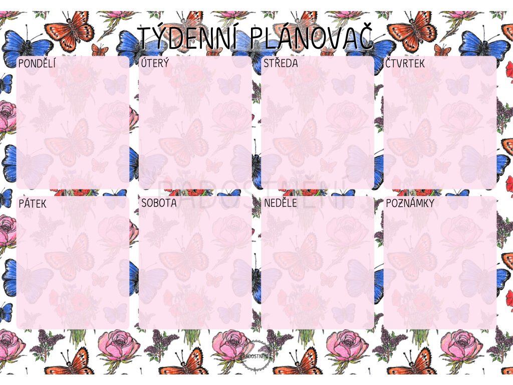 Rozměr plánovače je 28,7 cm x 20,3 cm.