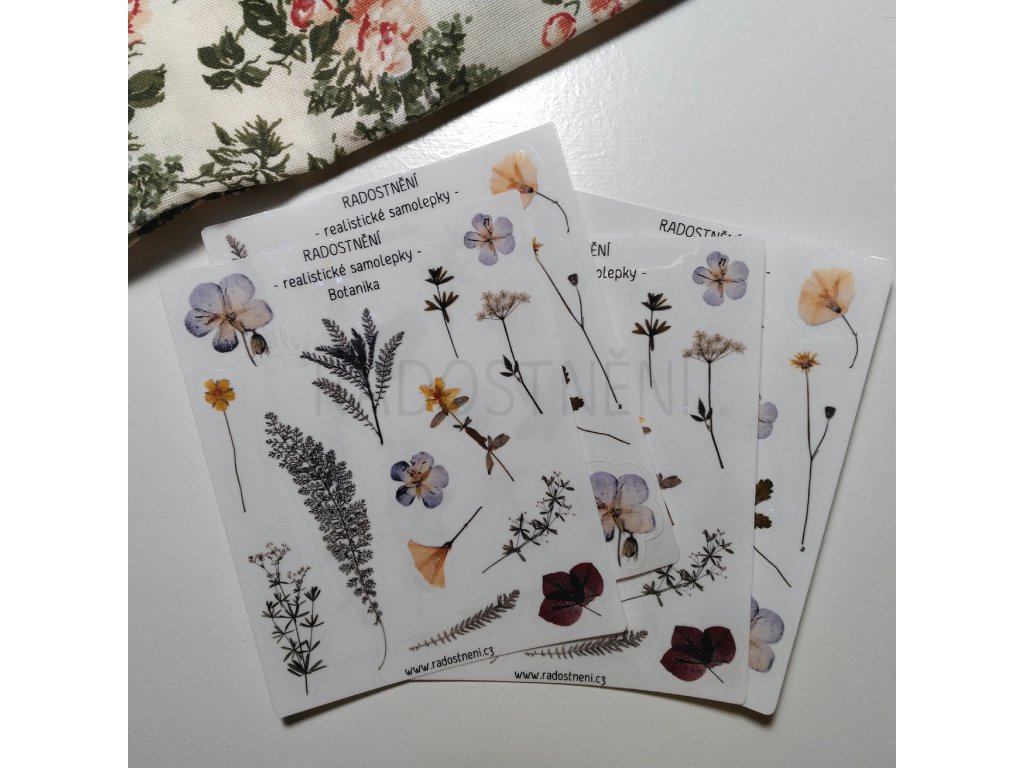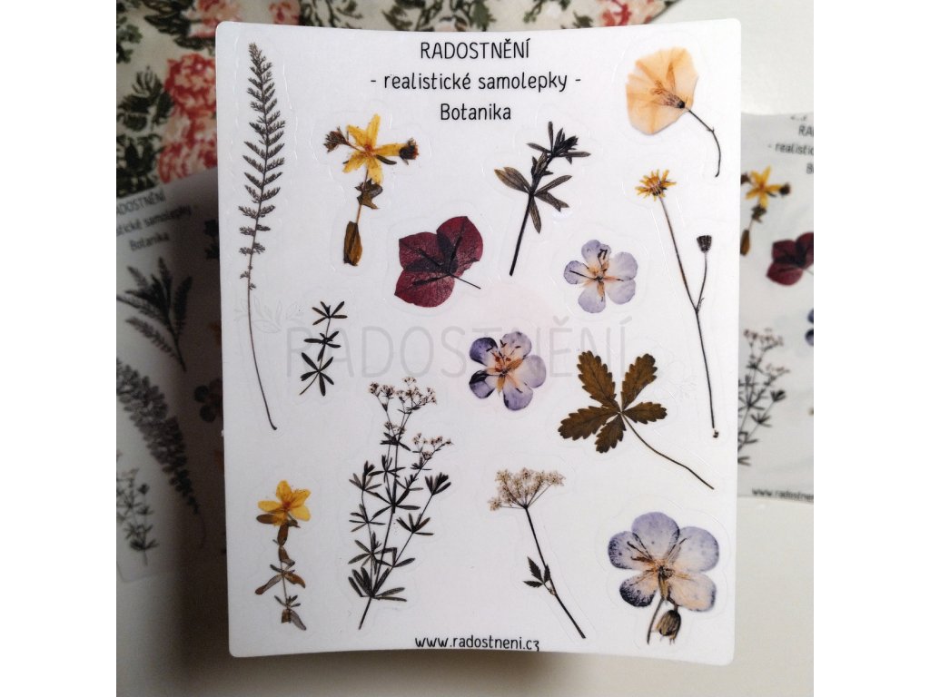 Realistické samolepky - Botanika II Barevný potisk, lesklá transparentní fólie