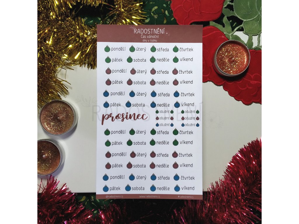 Dokonalá samolepková sada s vánočními a zimními motivy. Zdobení Vašich diářů a deníků dárků a přáníček Vám zpříjemní vánoční ozdoby, věnce, vánoční hvězdy a cesmíny, sněhuláci, dárečky, perníčky... zkrátka vše, co k tradičním českým Vánocům neodmyslitelně patří :) Dostupná také ve verzi na matném samolepicím papíru (ukázku rozdílu mezi lesklým a matným papírem najdete zde).