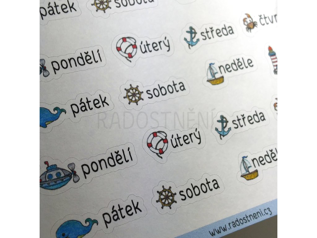 Varianta 05 - Dny v týdnu obsahuje celkem 40 ks samolepek.