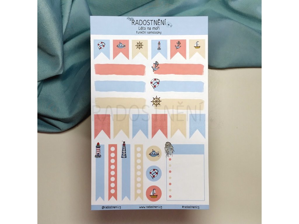 Samolepková sada s autorskými motivy námořnického léta. Perfektní pro všechny deníky, diáře, zápisníky, journaly, ale i pro psaní dopisů nebo jako dárek pro Vaše blízké milovníky papíru :) Samolepky Vás přenesou na moře, připomenout Vám slanou vůni čerstvého vzduchu a sílu letního slunce. Motivy majáků, loděk, ponorek a mořských zvířat doplňují i funkční a plánovací samolepky, můžete tak jedním tématem vyzdobit celý měsíc, ať už ve Vašem diáři, či ve Vašem bullet journalu (bujo).