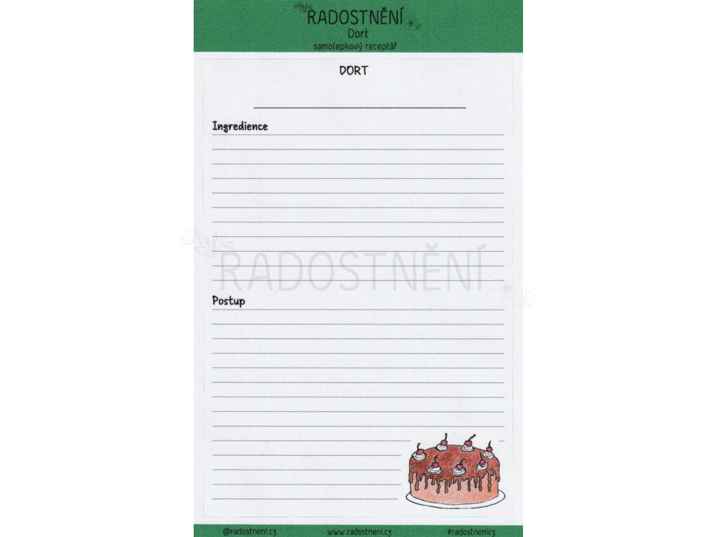 Samolepkový arch s velkou funkční samolepkou vhodnou k vlepení do našeho receptáře nebo sešitu A5.