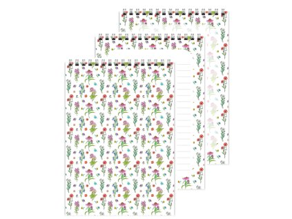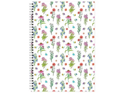 Sešit A4 s kroužkovou vazbou, jehož desky zdobí autorské motivy květin, které najdete v létě na české louce.