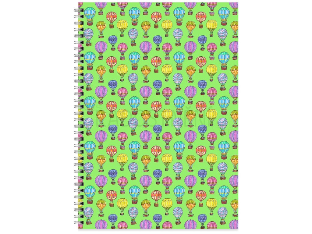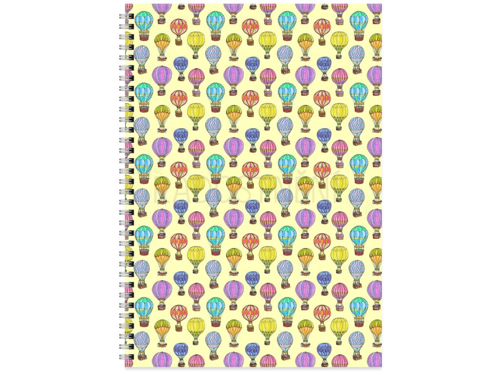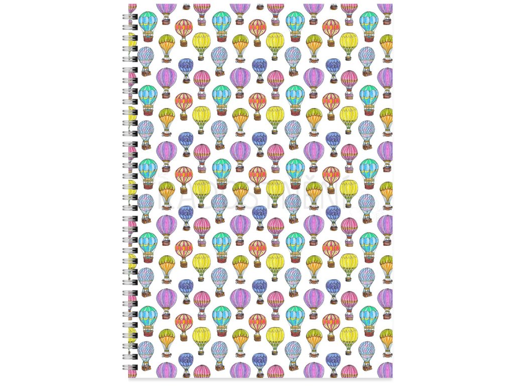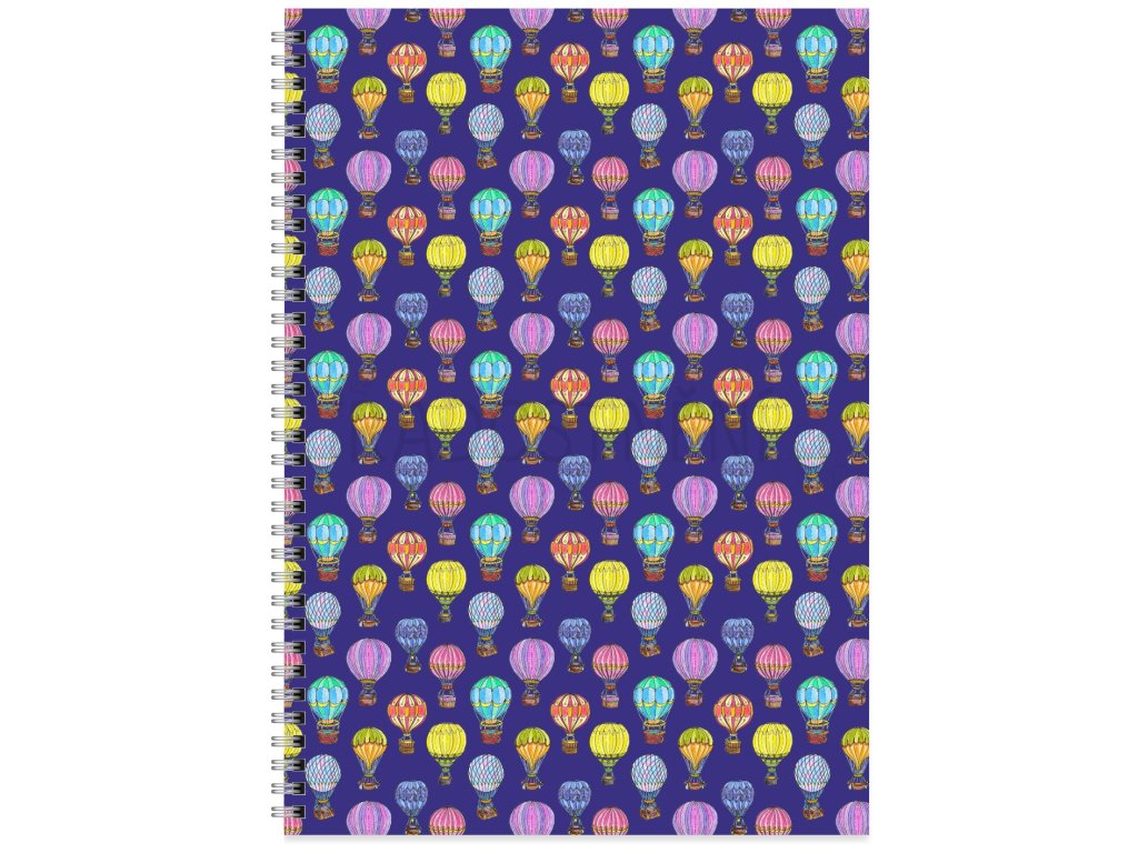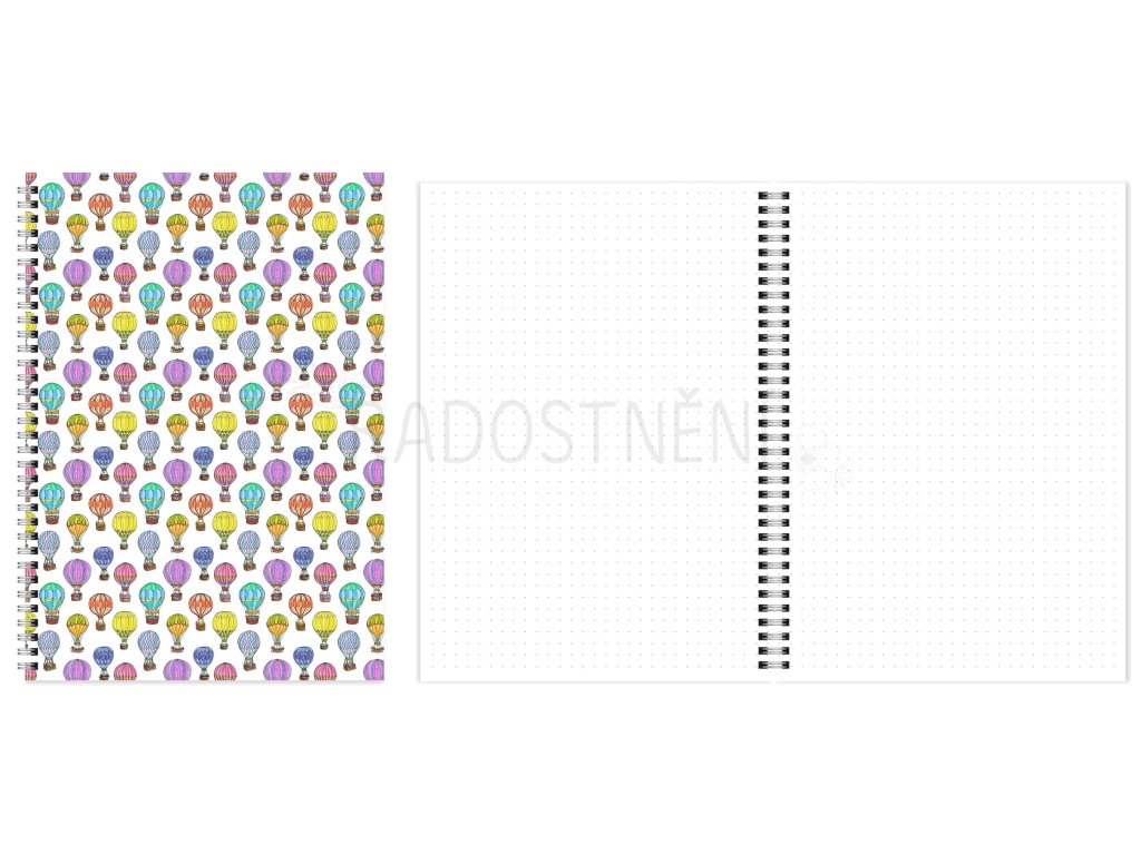 Ručně vyráběný sešit s kroužkovou vazbou s autorským motivem létajících balonů.