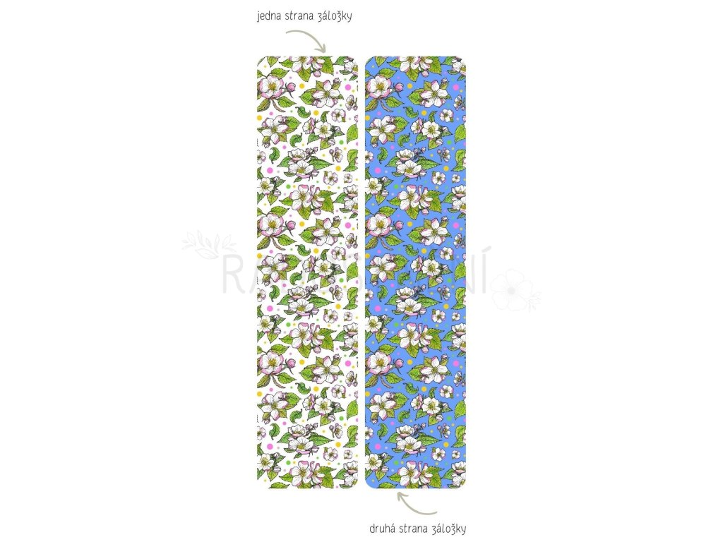 Krásná laminovaná záložka s ručně malovaným autorským motivem jabloňových květů. Ideální jako dárek! Dostupné ve dvou barevných variantách.